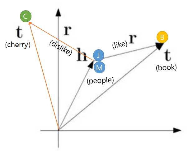 head + relation = tail즉, head와 relation vector의 합은 tail과 (최대한) 같아져야 한다는 것입니다. 이는 논리적으로도 타당합니다.